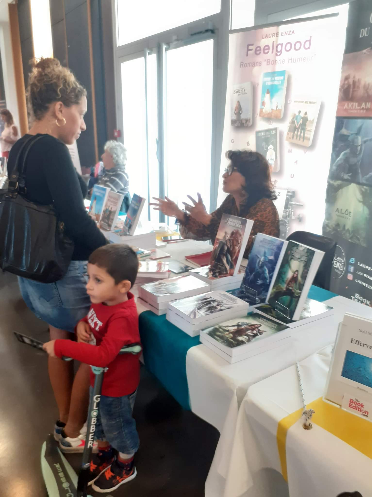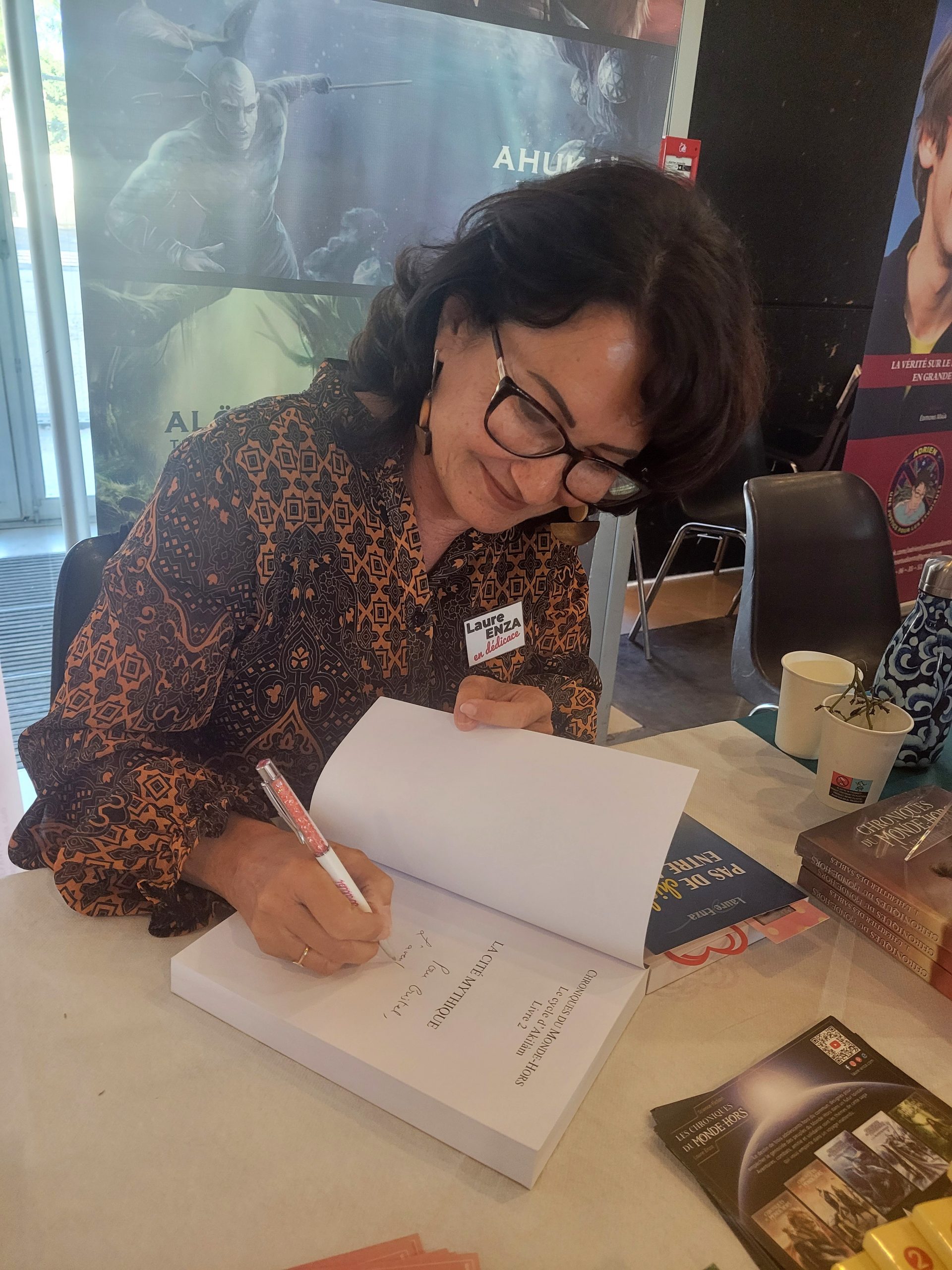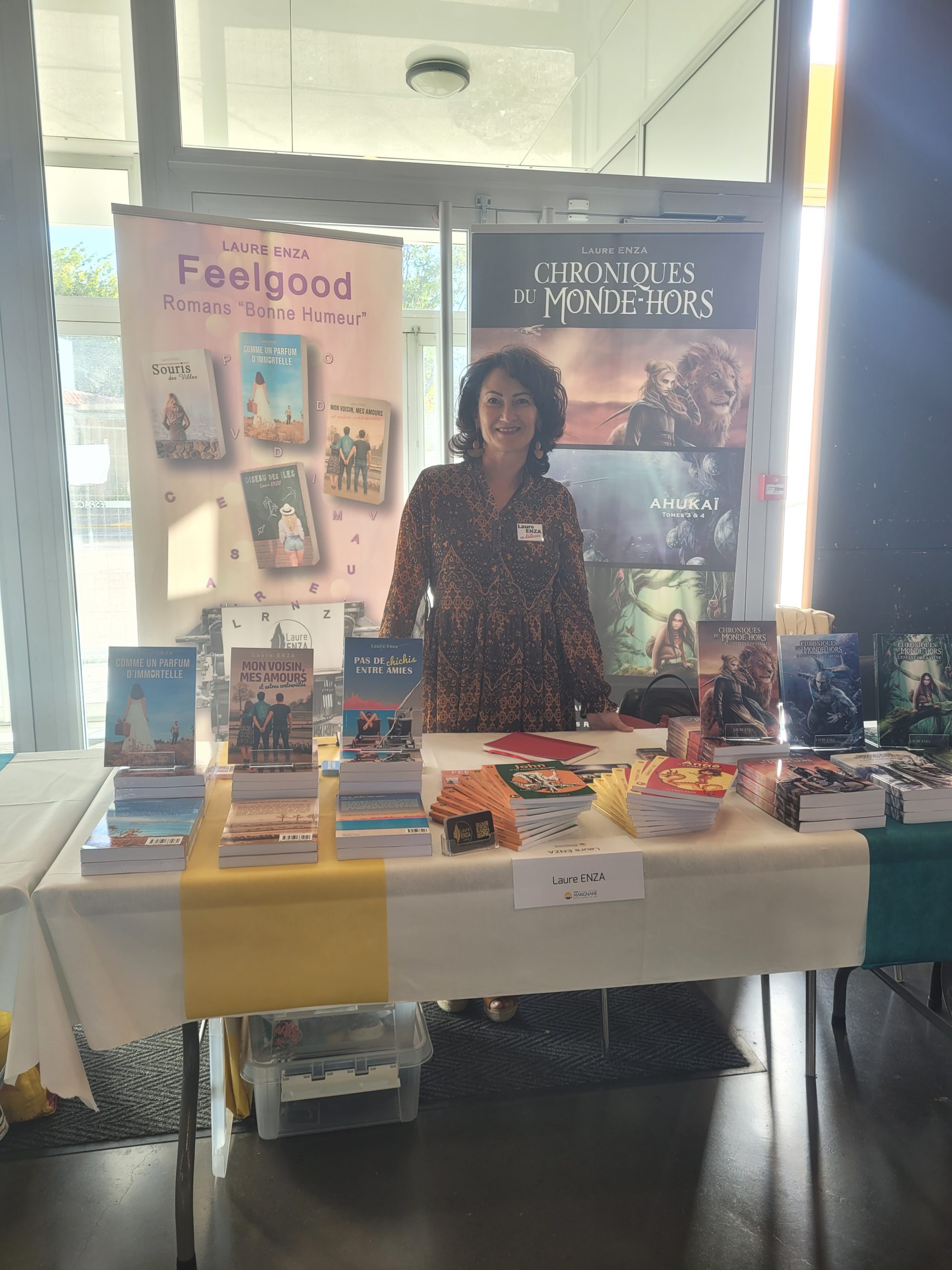À Marignane, c’est un peu ma famille littéraire que je retrouve, une communauté fidèle, attentive, curieuse, qui m’a vue grandir entre deux livres, deux projets, deux vies parfois. Le salon du livre de Marignane, organisé par Marignane Culture, possède cette saveur d’événements bien rodés, généreux et vivants. En septembre, quand le mistral se fait trop insistant pour qu’on s’installe place du Cours Mirabeau, nous nous replions dans la belle salle Saint-Exupéry. Le lieu est vaste, lumineux, accueillant. Cette année, nous étions soixante-dix auteurs à déplier nos univers côte à côte, comme autant de fenêtres ouvertes sur l’imaginaire, la mémoire, l’amour, l’histoire ou le rire.