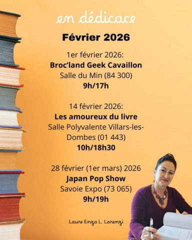 Dédicaces de 2026 Retrouvez-moi pour des séances de dédicace, des festivals ou des salon, un peu partout en France. Février 2026 Janvier2026 Vous devriez également aimer Dédicaces et salons 2024 15/12/2024 Dédicaces et salons 2023 31/12/2023 Dédicaces et salons 2022 31/12/2022 Laisser un commentaire Annuler la réponseCommentEnter your name or username to comment Enter your email address to comment Saisir l’URL de votre site (facultatif) Enregistrer mon nom, mon e-mail et mon site dans le navigateur pour mon prochain commentaire. Δ