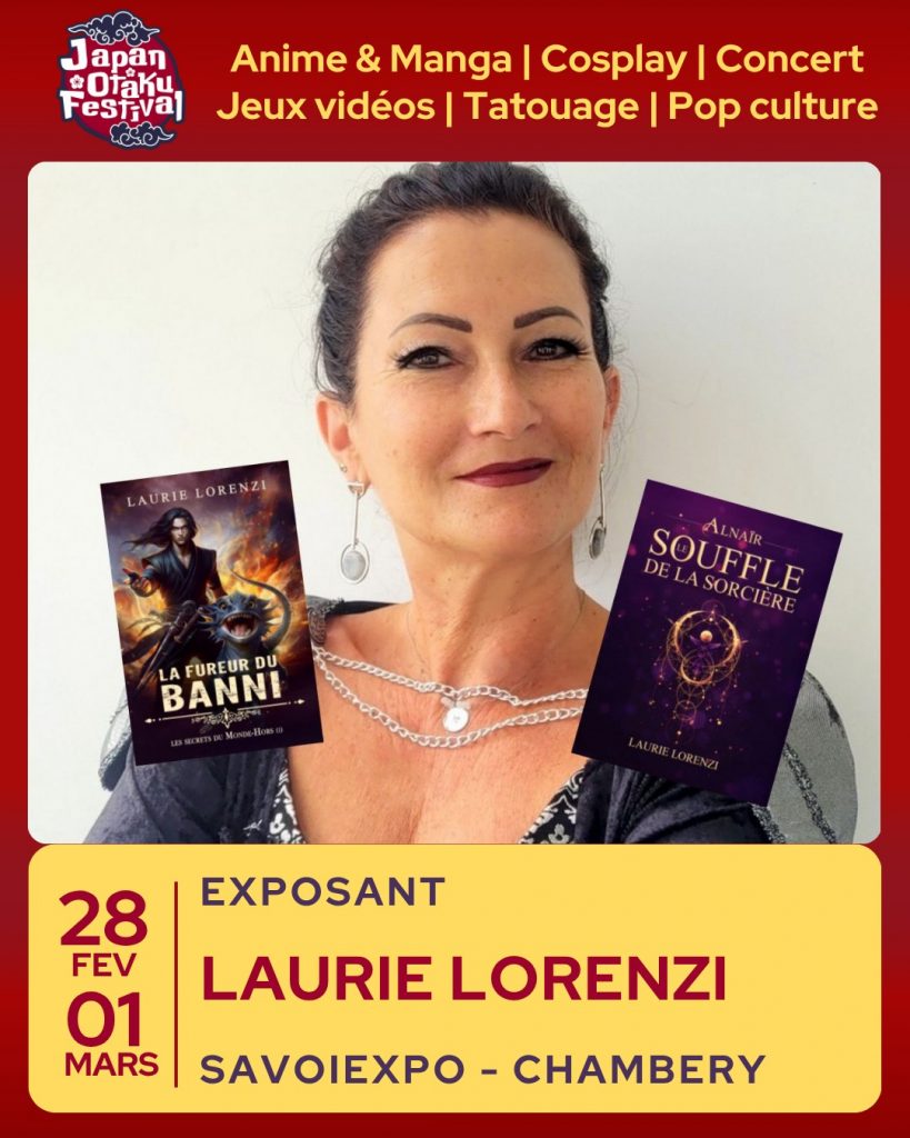 EXPOSANT À L’AFFICHE : Laurie Lorenzi (autrice) 📍 Retrouvez [@laurielorenziautrice] au Japan Otaku Festival Chambéry !Laurie Lorenzi est une autrice spécialisée dans la fantasy, la science-fantasy post-apocalyptique, la fantasy urbaine et le fantastique. Sur son stand, découvrez ses romans récents et plongez dans des univers riches et immersifs, parfaits pour tous les passionnés de lecture et de culture fantasy. Venez rencontrer Laurie Lorenzi et explorer ses mondes imaginaires !