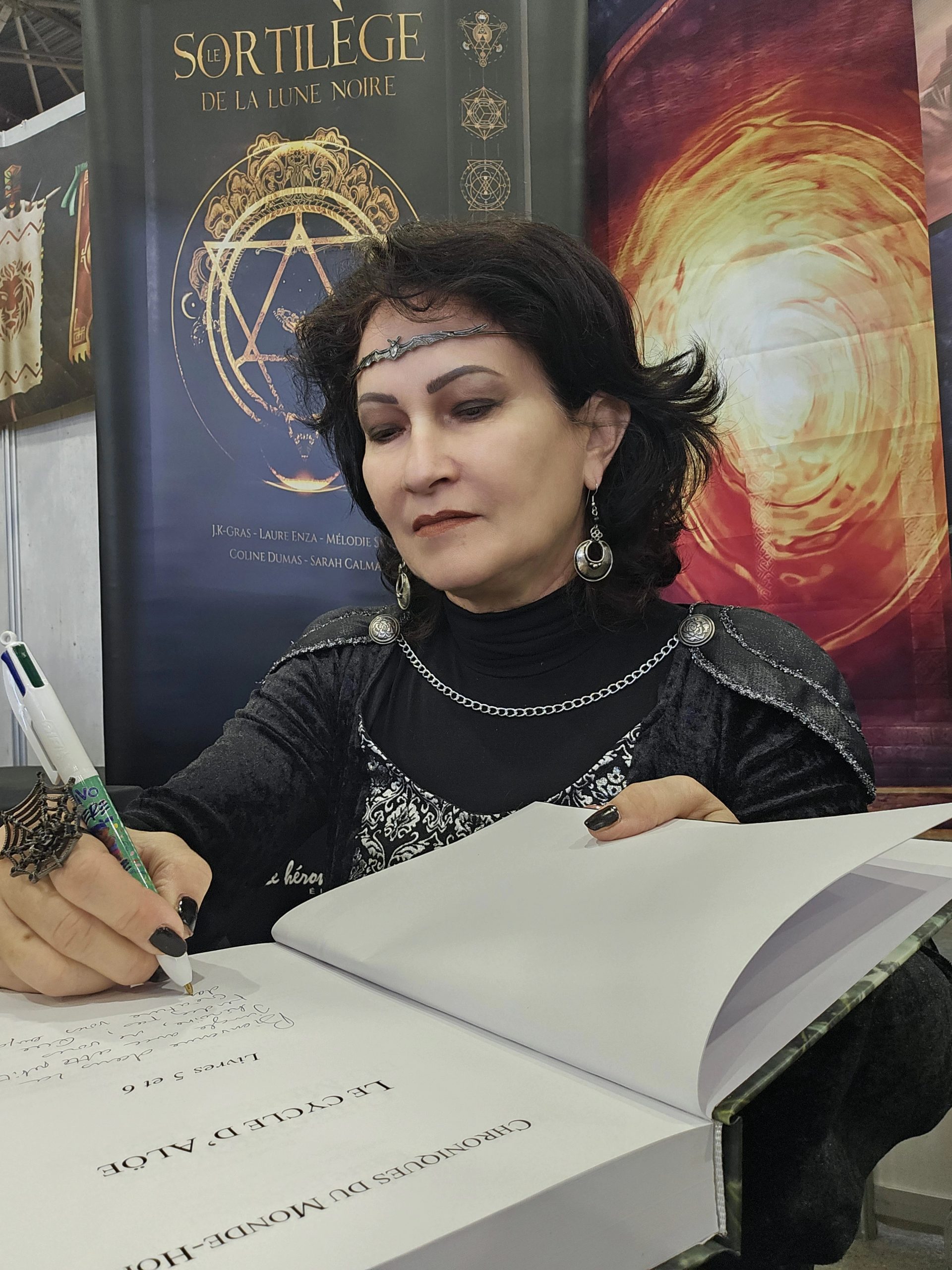 J’étais présente dans l’allée des auteurs, stand P028, au sein de l’Espace Alexandrina, un coin foisonnant d’écrivains et de créateurs. Mes voisins de table (et amis, à force!), Rémy Batigne et Lucile Chaponay, étaient comme d’habitude d’une gentillesse et d’un enthousiasme communicatifs. Ensemble, nous avons partagé sourires et selfies, mais pas le temps pour les discussions car les dédicaces allaient bon train! J’ai retrouvé avec plaisir de nombreux auteurs, que je ne peux citer, car j’ai peur d’oublier quelqu’un!