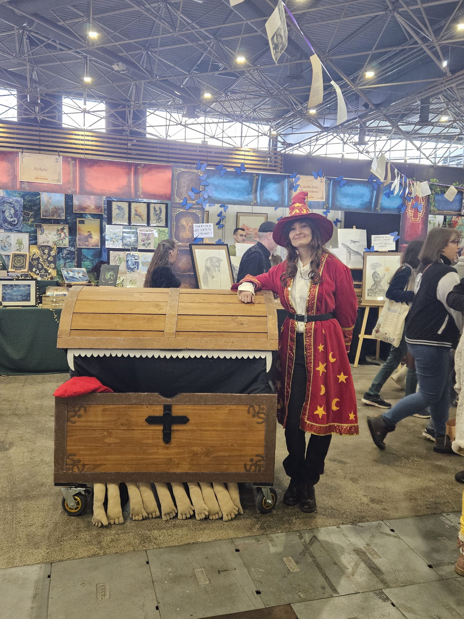 Un petit bémol cependant : ma table était quelque peu coincée entre les décorations, rendant la circulation difficile autour de mon stand. L’espace alloué était assez restreint pour un tarif rondelet, mais au regard de la magie ambiante et des rencontres formidables, l’expérience en valait largement la peine.